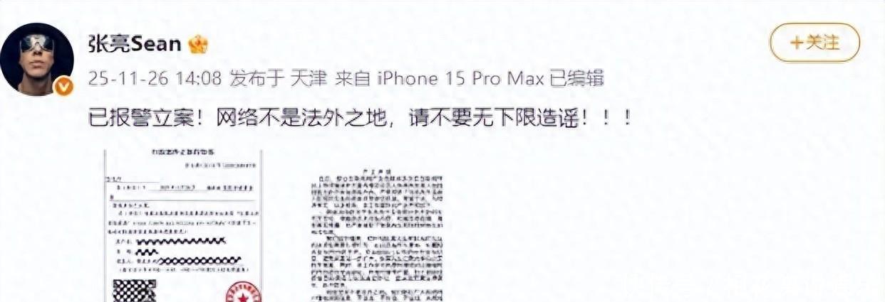 11月26日,模特张亮在微博发声明说已经报警了,还贴了立案告知书。报案人是他儿子天天,14岁,小名天天,被造谣诽谤了。这事是因为网上有人传他们父子的谣言,张亮说这些谣言严重损害名誉,已经通过法律手段处理了。张亮工作室也发了声明,说最近网上有很多不实信息,他们要追究到底。张亮原名叫张振锁,1982年出生,大家可能记得他带天天参加过《爸爸去哪儿》那个节目。现在这些人翻出旧事编故事,还用AI技术伪造视频,搞得一家人不得安宁。